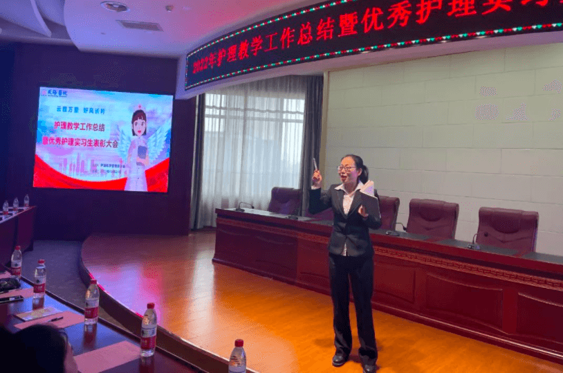 随后,护理教学管理委员会主任党文婷对2022年教学工作做了总结汇报。对工作中的亮点给予了肯定,指出了科室教学工作中的不足,希望各位带教老师在今后的教学工作中能以身作则,严格落实教学计划,不断提高教学质量。最后对2023年的教学工作做了重点指示。