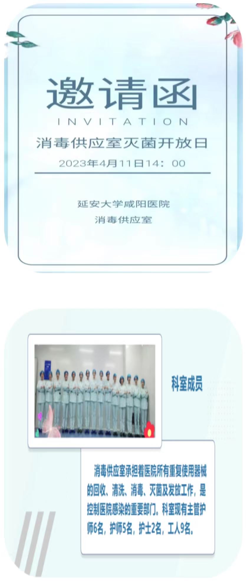 为积极响应陕西省消毒供应专业委员会以“绿色CSSD”为主题“世界灭菌科学日”的号召,延安大学咸阳医院消毒供应室于4月11日14时举办以“科学灭菌 共同守护”为主题的灭菌开放日活动。消毒供应室同丽娜护士长邀请全院临床、医技科室的同仁走进消毒供应室,通过现场参观、操作演练和互动沟通等环节,宣传器械再处理、消毒灭菌的全过程,及相关灭菌科学知识,拓展家对消毒供应室的深入了解,促进菌物品供应和规范、安全的使。