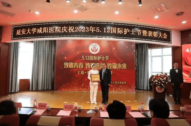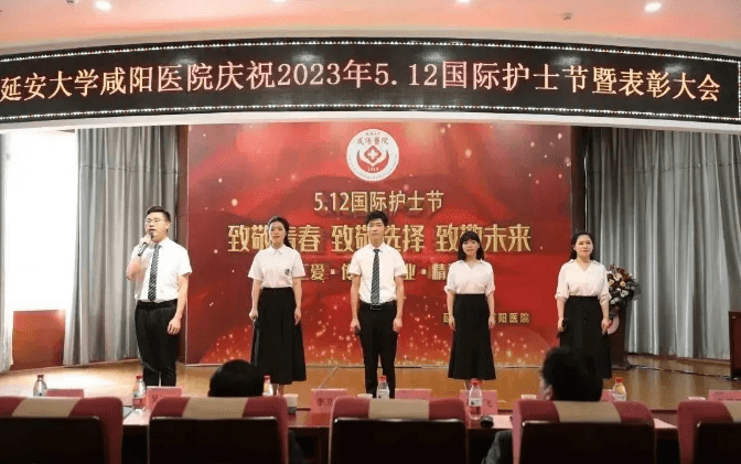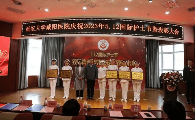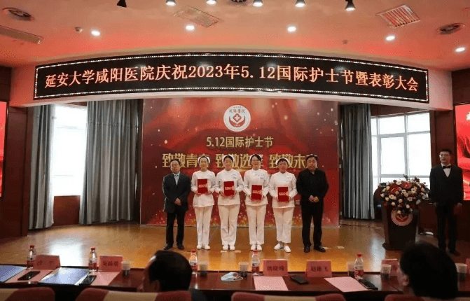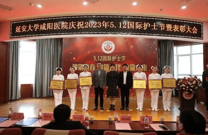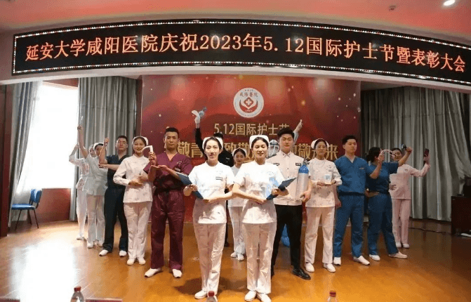 5月10日下午,延安大学咸阳医院“5·12国际护士节”庆祝暨表彰活动在脑血管病院第三学术厅举行,精诚医疗管理集团主席李卫军、延安大学咸阳医院院长姚晓峰、延安大学咸阳医院常务副院长吴栋梁、延安大学咸阳医院副院长赵雄飞、行政副院长兼工会主席沙宁、外科病院副院长姚春和、院长助理刘连锋、精诚医疗管理集团医药物流部总经理助理詹珊珊、院长助理兼护理部主任杨敏、副总会计师刘贝磊、科研教学管理中心副主任陈青、内科病院副院长张玉河、各分院总护士长及护士长、优秀护士代表等200余人参会。