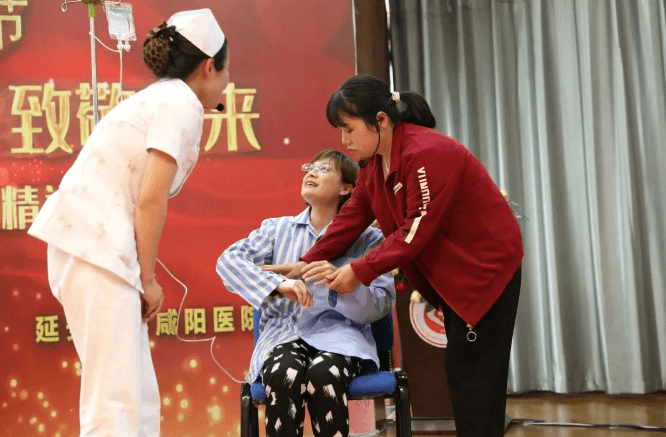 肩有担当,心有选择。不同护理专业的服装表演,将护士职业礼仪融入其中,展示延安大学咸阳医院不同岗位上的护士职业风采。