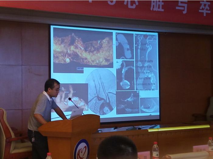 9:45 第四军医大学西京医院 韩军良教授为参会人员做心源性脑卒中的诊断与影像特点学术会。
