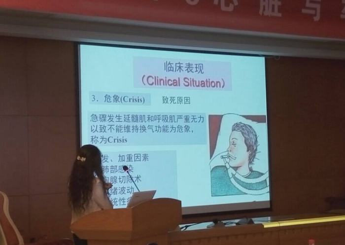 9:10 延安大学咸阳医院专家巩小英做主题为”重症肌无力”演讲。