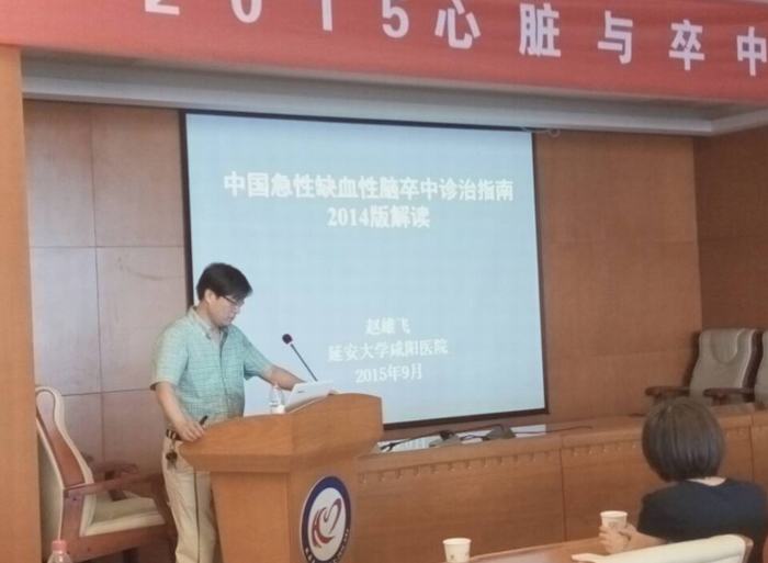 10:25 延安大学咸阳医院专家赵雄飞发表主题为“2015年脑血管指南解读”的演讲。