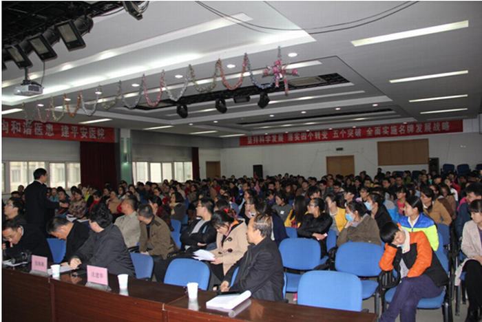 会上,赵长海教授首先以临床护理工作为大家讲授如何通过日常护理工作的微小细节来发现问题、分析问题和处理问题;他提出对疾病的知识掌握程度仅仅是以小方面,最重要的是通过这些细节去启迪思想,探索求证疑问。之后,赵教授分别从人才兴科、科教强科、质量建科、特色办科、文化立科等五个方面全面介绍了学科建设和文化建设的重要性,激发我院广大医务人员主动培养属于自己的“思维、习惯、激情 ”。到场的广大医务人员在听讲的2个多小时中全神贯注,整个会场落针可听,充分体现了青年医务人员对赵教授的钦佩和敬仰。
