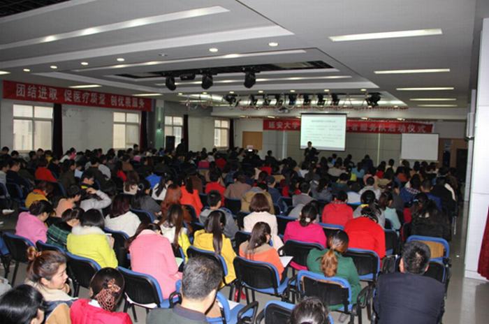 2015年11月10日的下午,综合楼四楼会场座无虚席、人潮涌动,由科教部主办的2015年延安大学咸阳医院名师讲坛第十二讲在我院成功召开,本次会议我们特邀西京医院赵长海教授为大家做了《舌尖上的安全》和《个人品牌建设》的专题讲座。科技局林胜利副局长、刘增用科长,我院张海涛副院长、沈建华副院长、科研教学管理中心韩晓芳副主任、科教部王丙聚部长以及部分科室主任、护士长和来自全院的医务人员共计300多人到场聆听了此次讲座。
