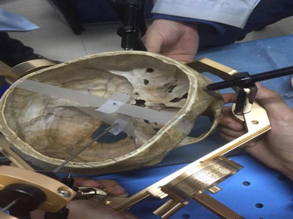 “咸阳市立体定向脑活检技术创新团队” 依托我院神经外科顶尖专家团队建立,现代脑立体定向手术是目前国际上十分先进的一种高尖端技术,在欧美发达国家,脑立体定向手术已占神经外科手术的30%以上,不少国家或地区建立了立体定向与功能神经外科中心或研究所,专门从事立体定向手术治疗脑疾病的研究。应用先进的立体定向技术,精确地监测出活动异常脑细胞的准确位置。其精确度从传统手术肉眼可见的厘米数量级提高到细胞水平的微米数量级,并将重大的并发症降为零,这一革命性的技术创新成为现代外科脑立体定向手术治疗帕金森病的前沿地带。该技术通过电生理记录、获取组织标本、制造毁损灶、消除病变等方法,以达到进行生理研究、诊断和治疗中枢神经系统疾病的目的。目前神经外科应用立体定向技术已开展颅内病变活检,深部血肿穿刺,囊性病变囊液抽吸,脑脓肿穿刺抽吸及腔内治疗,尤其对于颅内囊实性恶性肿瘤可以留置Ommaya囊进行治疗。