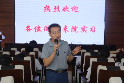 欢迎仪式上,科研教学管理中心韩晓芳主任代表医院对实习生来院学习表示欢迎,并对医院的基本情况进行了介绍,随后对大家在医院的学习生活提出六点宝贵的意见,希望同学们能迅速从思想上完成角色定位和转变,更好、更快地适应新环境,以满腔热情投身于实习中去,做一个文化素养与专业素质兼备的医学人。随后,学生代表刘宇成带领全体实习生进行医学生宣誓。