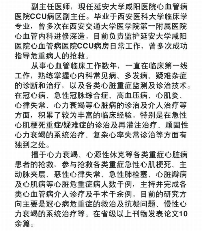咸阳医院心血管病医院 心脏内科专家团队 连载