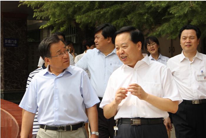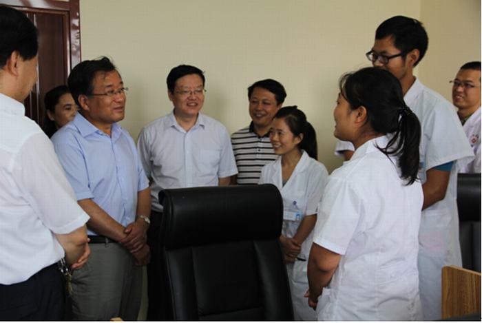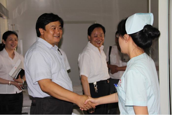 2014年8月21日,延安大学校长崔智林、延安大学医学院院长韩继明、副院长王璐一行三人来到延安大学咸阳医院检查指导工作。在董事长张群的陪同下,崔校长一行分别视察了检验科、功能科、体检科、CT室、自动化中心药房、心脏病科、神经内科VIP病区、并在心脏导管室观摩了一例心脏介入手术,当来到心脏病二科时,延安大学实习学生把崔校长一行团团围住,交谈中,同学们感谢学校和医院为他们提供了这么好的实习场所,带教老师们认真负责,院方尽可能的为他们创造良好的学习和生活条件,在历年的联考和研究生考试中都取得了骄人的成绩。崔校长听到后非常欣慰并鼓励同学们好好学习,把延安精神带到学习和工作当中去,争取更多的深造机会,为祖国医学事业的发展贡献自己的力量。