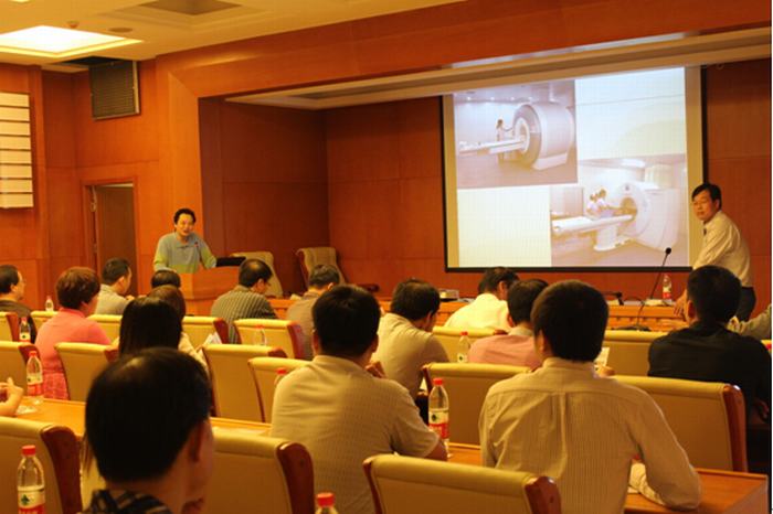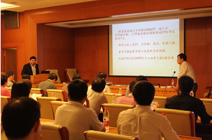 “秋高气爽、阳光灿烂”,2014年9月20日,由咸阳市医学会放射学分会主办,我院承办的咸阳市第四届放射学读片会暨延安大学咸阳医院第12届医技交流沙龙活动在我院心血管病医院20楼多功能厅顺利举行,大会由我院CT室刘连锋主任主持,延安大学咸阳医院张海涛业务副院长致欢迎词,咸阳市放射学会副主任委员兼秘书长贺朝主任致词,参会的有本院张海涛副院长、质控办彭永波主任、院办公室李鹏副主任、郭芝瑞主管、放疗科尹永信主任、放射科门学军主任、检验科孙继红副主任、于建平副主任、功能科吴建军主任、脑研所肖曼丽主任、心内VIP王显利主任、麻醉科王志涛主任、脑10科张东亚主任、脑15科郝锋利主任及临床、医技的大多医师,来自咸阳地区的放射届老前辈吕干民老师、陕中一附院贺太平主任、于勇副主任、陕中二附院贺朝主任、刘主任、咸阳市中心医院马宁主任、孟智辉主任,咸阳市第一人民医院的寇主任、杨主任、核工业215医院张主任及彩虹医院的张主任及其咸阳市区及部分县区140余名放射专业及部分临床人员参加了交流会议,从2:20开始由咸阳市6家大型三级医院带来9份病例,每位汇报人开始汇报病例,现场发言控制在30分钟内。2点20分首先由核工业215医院张主任带来1份2组病例右侧颞极表皮样囊肿、右眼手术硅酮油破入第四脑室;陕中二附院的3份病例分别是左侧膈疝、双肺炎症、胰体脾动脉瘤;咸阳市中心医院MRI室秦琛琛汇报的鞍区病变颅咽管瘤、灰结节错构瘤,CT室的食道鳞状细胞癌;陕中一附院带来的4组不同病理类型的肺癌,咸阳市第一人民医院带来的盆腔及肠系膜结核;最后由我院张利安医生为大家带来的一组4种不同病理类型的脑膜瘤;分别为纤维型、微囊型及过渡型,大家发言积极,会场气氛热闹,刘连锋主任就每组CT、MRI不同表现分析与常规脑膜瘤的不同,最后分析诊断要点及鉴别诊断;来自各医院的主任及年轻医师发言积极、气氛活跃,更新了广大放射人员的知识视野,拓宽了临床影像诊断思路,扩大专业知识范围,为更好服务临床患者夯实了理论基础。最后由放射届前辈吕干民老师做了大会总结,他认为20局中心医院发展迅速、令人羡慕,这次学术会组织的有力,参会人员历届最多,不仅拓展了影像诊断思路、而且提高了影像诊断水平,是一次咸阳市高水平的学术会议;会后组织参会人员参观了双源CT及3.0T磁共振,同仁们一致认为医院对我们医技科室配置高端设备、舒适环境表示赞许。