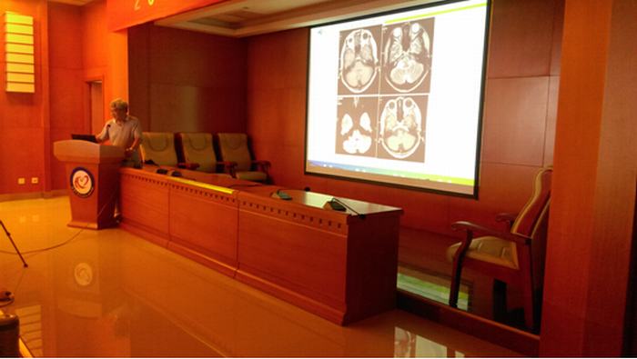 鱼博浪教授就颅脑病变MR信号的分析进行了精辟解读。他从人体颅脑着手分享了他对影像学诊断的独到见解,使医护人员意识到影像学诊断在当下疾病诊断中的重要地位。最后,鱼博浪教授对我院今后工作及发展表达了衷心的祝愿。
