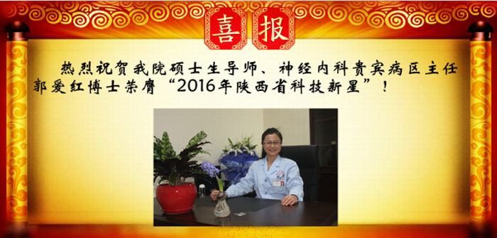 热烈祝贺我院硕士生导师、神经内科贵宾病区主任郭爱红博士荣膺“2016年陕西省科技新星”!