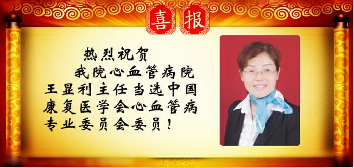 热烈祝贺我院心血管病院王显利主任当选中国康复医学会心血管病专业委员会委员!