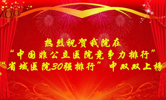 热烈祝贺我院在“中国非公立医院竞争力排行”“省域医院30强排行”中双双上榜