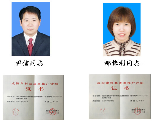 近日,根据咸阳市科技局《关于下达“咸阳市二0一五年度科技成果推广计划”的通知 》(咸政科【2015】175号)的文件精神,我院放疗科主任尹信同志领衔申报的科研项目“单次大剂量低分割精确放射治疗胰腺癌的推广应用”和神经内科十五病区主任郝锋利同志领衔申报的科研项目“咸阳市急性脑卒中事件登记及数据库建设成果推广应用”成功获批为“咸阳市2015年度科技成果推广计划”!