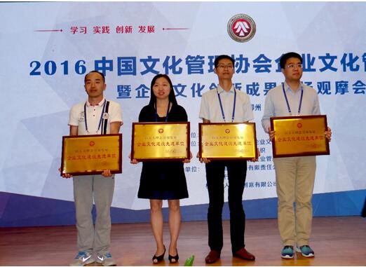 9月28-29日,由中国文化部主管,中国文化管理协会企业文化管理专业委员会主办的2016年中国企业文化管理年会暨企业文化创新成果现场观摩会在广西柳州举行。会上,我院荣获“企业文化建设先进单位”荣誉称号,董事长张群荣获“企业文化突出贡献人物”,党委书记李卫军荣获“企业文化杰出人物”称号。原国家民政部副部长、国家民委副主任、中国文化管理协会顾问陈虹,文化部办公厅原副主任、中国文化管理协会执行副主席陆耀儒等到会。我院办公室副主任李鹏参加颁奖活动。