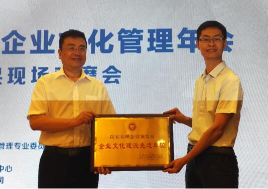中国文化管理协会企业文化管理专业委员会会长解云天为我院颁发“企业文化建设先进单位”奖牌