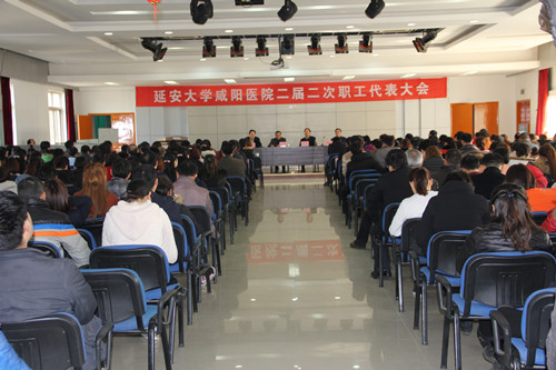 2月10日下午14:00,我院在综合楼四楼会议室正式召开延安大学咸阳医院全院职工大会暨二届二次职工代表大会,会议由张海涛副院长主持。大会伊始,康彦文院长首先就2016年医院发展状况进行了汇报,脑科大楼顺利落成正式开诊、医疗服务水平稳步提高……汇报简明扼要,充分表明了医院2016年在建设发展中取得的良好成绩。其后李卫军书记从全力以赴创三甲,确保顺利通过评审、加强基础设施建设,改善住院环境、提升医疗服务质量,增强服务内涵等多个角度对2017年医院工作要点进行了汇报,强调了精心安排、积极准备,努力争创三级甲等医院是2017年工作的主要任务。