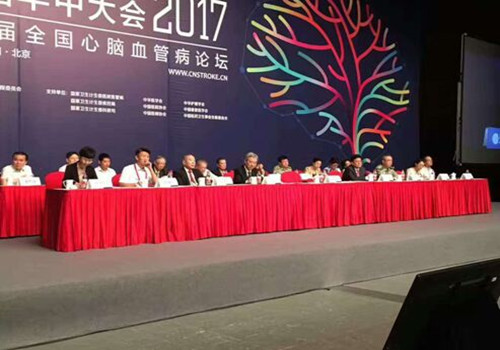 2017 年 5 月 21 日,由国家卫生计生委脑卒中防治工程委员会、中国老年保健医学研究会和中华预防医学会主办的2017年中国脑卒中大会暨第七届全国心脑血管病论坛在北京国家会议中心完美收官。全国政协副主席、九三学社中央主席韩启德院士,国家卫生计生委副主任、国务院医改办王贺胜主任,全国人大科教文卫委员会副主任委员、国家卫生计生委脑防委副主任王陇德院士,中央军委后勤保障部卫生局季建华副局长,国家卫生计生委及财政部相关司局领导和中国科学院赵继宗院士,前亚太卒中机构主席安德森教授等国内外300余位专家、近400家基地医院及卒中中心单位院长等6000余人参加会议。会期期间,我院被授予“高级卒中中心”单位,袁彩华副院长代表我院出席颁奖仪式,王丙聚同志作为委员参加了国家卫生计生委脑卒中防治专家委员会第三次工作会议,脑血管病院赵雄飞副院长喜获国家卫计委脑卒中防治专家委员会出血性卒中内科专业委员会委员、神经内科十三病区王少君副主任医师撰写的《强化他汀治疗急性脑梗死的疗效及安全性》获得2017年中国脑卒中防治百篇优秀论文“司南奖”。