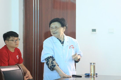 赵雄飞副院长首先对88岁高龄陈惠玲教授如期来到参加科技工作者日活动表示感谢,感谢陈教授几十年来对我院建设与发展及人才培养做出的巨大贡献。作为老一代的医务科技工作者,他用实际行动在阐述“救死扶伤,不辞艰辛,执着追求,为祖国医药卫生事业的发展和人类的身心健康奋斗终生”的誓言,感染并影响了青年的医务工作者,是年轻人学习的典范。陈教授表示:年青一代的医生,一定要打牢自身的根基,多学习,吸取更多的新知识,紧跟时代的步伐,用科技带动医学的发展。
