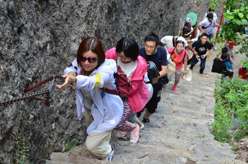 重走革命线路是本次红色之旅教育实践活动的重要环节。参观完纪念馆后,党员干部来到了距照金镇约5公里的薛家寨革命旧址。薛家寨山势险峻,道路陡峭狭窄,许多人闻而生畏,望而却步,选择乘缆车上山。面对各种压力,院董事长、党委书记李卫军号召全体人员弘扬革命传统,发扬“铁军精神”,攻坚克难。广大党员备受鼓舞,立志徒步登山。因大家平时忙于日常工作,缺乏锻炼,山路走不到一半就体力不支,前行艰难。但当大家想到革命先烈就是在这样艰苦的环境下为革命的胜利而艰难斗争的时候,所有人都深受教育,没有畏惧,仅凭着坚强的毅力,登上了山。之后,他们依次参观了红军医院、修械厂、被服厂、仓库等革命旧址,深深为革命先辈在艰苦卓绝的条件下追求真理、践行正义、英勇斗争的大无畏气概所震撼。