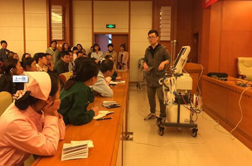为了进一步提高医疗技术水平,强化对危重症患者的救治能力,保障患者生命安全,我们内科系统特邀请呼吸内科呼吸治疗师王海荣医生对全内科系统医护人员进行专项培训。培训过程中,王海荣医师采取理论讲解及实物操作的形式,针对呼吸机工作原理、有创机械通气及无创机械通气的比较与注意事项、呼吸机操作步骤、呼吸机使用的适应症和禁忌症、参数的调节、常见报警原因及其处理方法、管路的消毒、机器维护等相关理论知识和实际操作进行了详细讲解。参加培训的人员均认为此次培训很有必要,意义重大,不仅加强了临床一线使用生命支持系统的安全性,而且对临床应用呼吸机的技术水平带来了很大的提升。