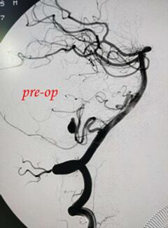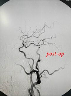 患者一:患者因颈内动脉慢性闭塞(CTO)并伴有进行神经性功能缺损症状入住我院神经外科,经脑血管造影及其他充分的影像学资料及术前仔细评估,充分向患者家人告知病情,并经患者家人知情同意在全身麻醉下行右侧颈内动脉闭塞血管再通支架植入术,手术过程顺利,围手术期患者病情平稳,术后患者神经功能缺损症状明显缓解,充分展示了我院在缺血性脑血管病方面的造诣。