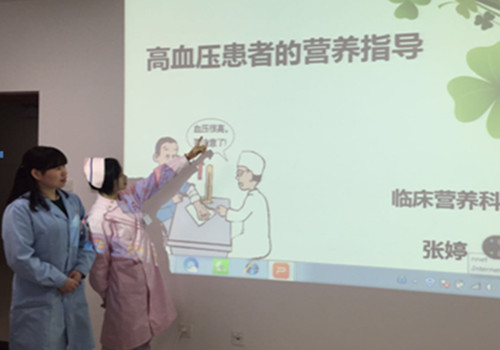 2018年1月22日下午,延安大学咸阳医院临床营养科与神经内科VIP一病区携手举办“高血压患者的营养指导”健康知识讲座。本次讲座由吕玉华护士长主持,临床营养科张婷营养师主讲,参加培训的患者及家属来自各个科室,共30余人。此次讲座,是以提高患者对高血压饮食营养的知晓率为目的,倡导健康的生活方式,增强患者对高血压病的认知。