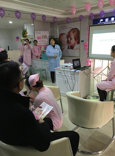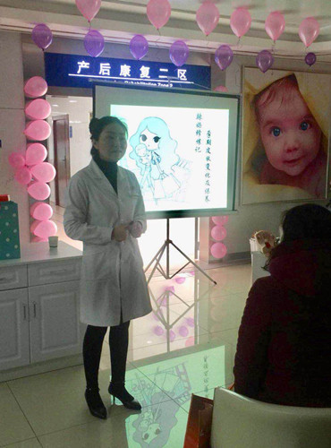 妇科专家马依娜正在产后康复科定时举办的孕妈沙龙课堂为孕妈讲解如何科学坐月子