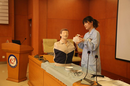 培训会上,韩晓芳主任和王绍辉主任分别对我院广大住培学员提出要求,要求他们牢记医生的责任与使命,奋勇争先,不断提高岗位胜任力。冰冻三尺非一日之寒,术业专攻非一日练就。希望他们积极主动的去学习,并在课下进行强化训练,做到知识技能熟练掌握、灵活运用,为独立胜任住院医师岗位而开辟通途。随后,我院肿瘤外科李伟同志、消化内科张荣同志、神经外科一病区刘文刚同志分别以图文并茂、现场演示等方法就手术刷手法、胃肠减压法、腰椎穿刺术等培训项目对学员进行了详细的讲解。此次培训形式新颖、内容丰富,受到了广大学员的一致好评,会场气氛热烈。