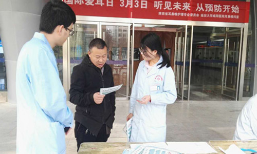 2018年3月3日是全国第19次“爱耳日”,今年的主题是“听见未来,从预防开始”,我院耳鼻喉科积极响应并开展了“关爱耳朵健康——安全用药”为主题的免费义诊活动。