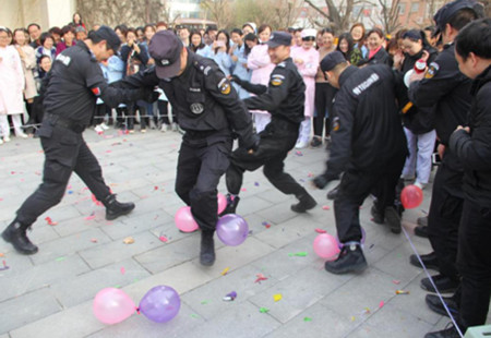 投篮、跳绳、呼啦圈项目也是争夺的十分激烈,踩气球项目将整个游艺活动推向高潮,一声令下,大家一拥而上,你追我跳,围观的群众也不时使坏,把靠近场边的参赛者的气球悄悄踩破,选手又气又笑十分热闹。