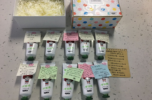 出院后,她还送来了一份小礼物,精致的盒子里铺满了和她一样明亮的拉菲草,整整齐齐摆了一盒可爱的护手霜,每个护手霜上都贴了小小的便利贴,表达了她对照顾过她的每一个医护的感谢,张浩,赵云轩,王雪利,姚佳妮,将雨晴,吴甜丽,李苑,王瑶,张强强、贾军辉等可以准确到每一个人的名字,甚至是助理护士,说实话我是有点惊讶的。而同时对于把洗手当作家常便饭的医护们来说,这份细心和贴心倒是最好的礼物了,让每个人在工作中时刻紧绷着的弦松了些许下来,心和3月的温度一样暖,原来职责和价值是可以共存的。