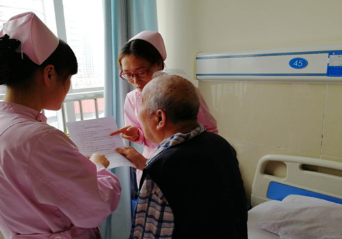 该患者已有84岁高龄,于2018年4月9日急诊来院,反复胸闷、心悸五年,加重3小时。以“冠状动脉粥样硬化性心脏病”收住入院。”心电图示:阵发性房颤伴R-R间期,建议植入永久性起搏器。当时患者及家属心情低落,拒绝行起搏器治疗。4月11日凌晨2点,值班护士闫珍珍发现患者心电图有异常,随后出现阵发性晕厥,值班医生陈磊在万分紧急的情况下征得家属同意,立即给予安装临时起搏器。由于该患者年事已高,听力不好,沟通起来特别困难,所以每次主管护士陈静都是趴在患者耳边沟通,耐心给患者讲解起搏器的作用,主管医生张树远也向家属讲解了起搏器的好处,在医护团队的共同努力下,终于在4月13日的早晨,患者接受了安装起搏器手术,术后患者状态良好,从抢救室转到了普通病房。每天的床旁交接班,主管护士李春妮亲切的问道:“昨晚休息怎么样?”“早饭吃了吗?”“药吃了吗?”这位患者都会开心的像个孩子一样竖起大拇指说,好,都好!