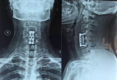 因患者年龄较轻,双下肢无力症状明显,病变区脊髓信号改变,保守治疗病情会继续发展,后期脊髓神经变性,压迫症状加重,严重影响肢体功能,必须尽早手术。骨一科主任杨志奎带领曹熙、田涛、张凯迪医师为其实施了颈椎前路颈5椎体次全切、椎管减压植骨融合内固定术。手术历时3小时顺利完成。术后第二天,患者双手指麻木症状明显缓解,四肢关节活动均正常。第三天配带颈托保护下床活动锻炼,双下肢无力症状明显减轻。患者现已康复出院。