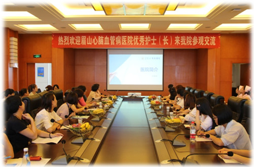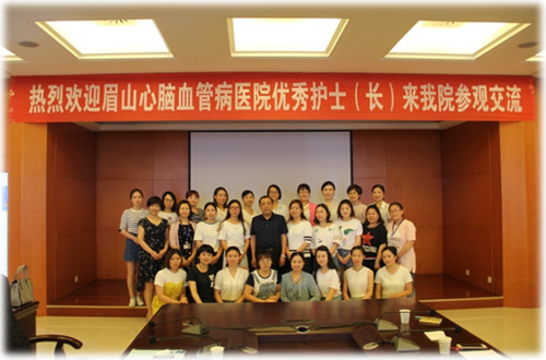 5月17日,眉山心脑血管病医院王超英副主任带领优秀护士、优秀护士长一行15人来我院参观交流学习。我院护理部精心准备交流内容及接待方案。