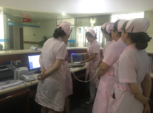 护士长赵薇借助此次医院培训的契机认真学习,依据工程师培训的内容从心电监护仪各导联线的正确连接、日常维护保养到主界面各参数调节方法的使用,详细具体的进行了科内再培训,并将常见问题的处理方法一并转达给护士。在此次培训中科室护士积极主动,学习热情高涨,提出了在使用过程发现的问题。比如,不同的滤波方式有什么区别?;心跳来源(自动、同时、spo2、ECG)的区别?现场问答、讨论等形式,培训效果良好有效。