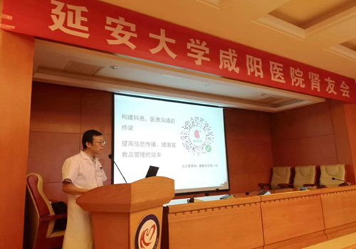 2018年9月7日,“延安大学咸阳医院首届肾友会” 在心脏楼第二学术厅成功举办,肾病内科主任王卫军同志、护士长石娟同志、涂小刚同志等全体医护人员、内科综合办王梦娇主管,昝琳医务干事以及肾友及家属等60余人参加了此次会议,本次肾友会由肾病内科主任王卫军主持。