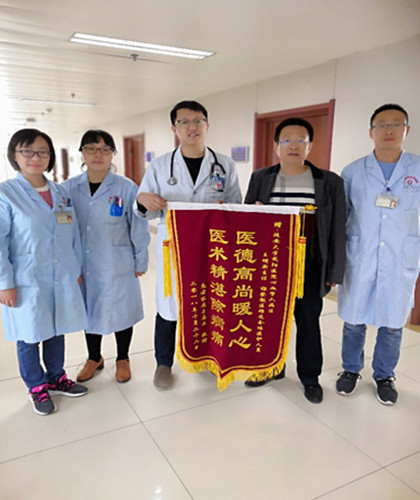 这样的场景无数次发生在我们身边,每一句深情的问候,每一张喜悦的笑脸,每一次感激的握手,每一个热情的拥抱都是对我们最大的鼓舞。我科自成立以来,在院领导及心血管病院的支持与关心下,在王明新主任的带领下,在与其他兄弟科室的紧密协作中,全科人员上下同心,在救死扶伤这条道路上取得了无数的成功与经验。近年来,我科累计完成冠状动脉造影术及支架植入术七千余例,起搏器植入术、射频消融术及先心封堵术上百例,拥有一支人员结构合理、诊疗经验丰富、理论水平先进的医疗团队,在冠心病、先心病、心律失常、高血压等疾病的诊疗中处于地区领先地位。他们身上披的是厚重的铅衣,手里拿的是纤细的导丝,心里装的却是患者的全部。正是这无数次的听,无数次的触、无数次的穿与无数滴的汗融成了我们前进路上的每一步。