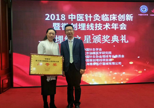 近日,从2018中医针灸临床创新暨微创埋线技术年会获悉,我院皮肤科陈小艳主任荣获“第三届全国埋线之星竞技大赛”二等奖。