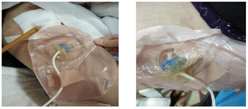 经过反复的讨论和一次次的试验后,实践总结出了造口袋的最佳使用方法:使用一件式造口袋,将造口袋底盘口的直径,裁剪出与引流管处伤口一致的形状,将引流管的外接口端从造口底盘穿进造口袋,经造口袋正面剪的小孔穿出造口袋,用水胶体薄片密封造口袋的缝隙也起到了固定引流管的作用,最后再用3M胶带进行二次固定。