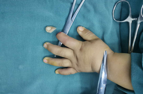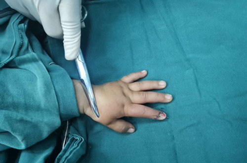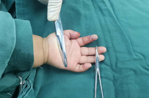 侯晓进主任带领医师岳贤峰、魏石磊历时2小时,成功再植离断指体。观察指体张力适中,皮温、皮色正常,毛细血管充盈实验正常。术后予以对症治疗,按时伤口换药,保持清洁。再植指体存活良好。于2019年1月22日间断拆除伤口缝线后,患儿治愈出院。