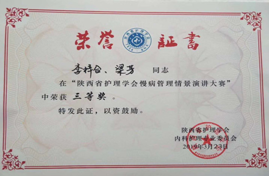 ——祝贺我院血液内分泌科梁芳、李梓合荣获陕西省内科护理学会慢性病管理演讲比赛三等奖