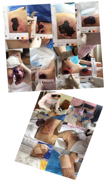 据患者家属讲述,患者曾辗转求医但治疗效果不佳,遂即来我院就诊。这是科室自开科以来收治的皮肤压力性损伤最为严重的一位患者,看到患者备受疾病折磨的痛苦面容,我们心中五味杂陈,我们担忧-这种多部位的重度皮肤破溃能否痊愈?更多的是我们无奈-造成这样重的皮肤破溃,家属的照护知识该是多么的匮乏……