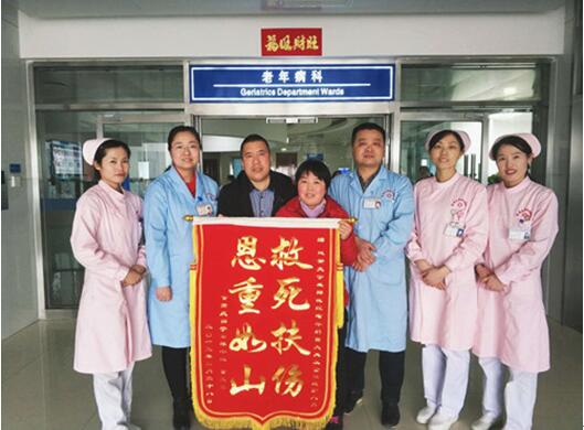 回到家乡后,患者及家属仍不忘感激之情,特制了一面锦旗写到:“救死扶伤,恩重如山”。原准备从甘肃寄过来,后他们改变了主意,夫妻俩专门赶了近千里的路程来到医生面前将锦旗送出!
