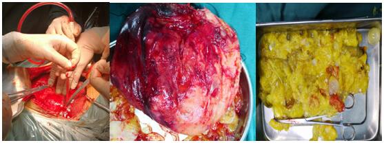 患者入科,姚春和主任与科室医师通过细致的诊查,即确诊该患者系“肝脏巨大肝包虫”。此病例较为罕见,手术难度大。经严密术前讨论,姚主任操刀,于4月16日在全麻下行巨大肝包虫外囊摘除术。术中严格无菌保护周围组织,细致剥离血管,手术历经4小时,成功摘除大小约20*30cm包虫外囊。此例手术的完成标志着我院肝胆外科在肝脏手术的又一巨大突破。