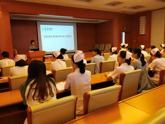 为提升肿瘤专科护理能力,结合《专科护理领域护士培训大纲》要求,以及我院实际情况,2019年7月15日下午,我院肿瘤专科护士培训班在心血管病院二十楼第一学术厅举行开班仪式。护理部杨敏主任、护理人员继续教育管理委员会主任陈英总护士长、肿瘤内科白洁护士长以及来自全院的肿瘤相关科室的30余名护理骨干一起参加了本次开班仪式。开班仪式由肿瘤内科白洁护士长主持。