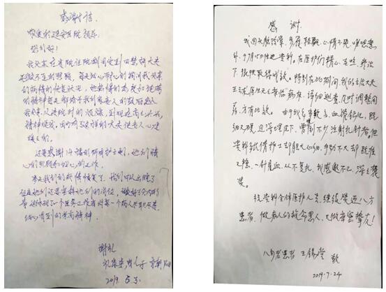 在神经内科十一病区,每位患者都会在张维主任亲自把关下得到精细的治疗方案、康复诊疗计划,甚至包括医护人员与患者的细心沟通方法,确保每位患者得到最大限度的康复。因此经常有患者用不同的方式在表达着谢意。2019年上半年共收到锦旗、感谢信等8余件,这是患者对我们最大的肯定,是我们工作的最大动力。