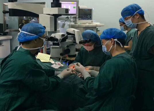 近日,眼科成功完成一例巨大裂孔性视网膜脱离并黄斑裂孔、视网膜下增殖膜的复杂视网膜脱离微创玻璃体手术。该类手术的开展代表我院眼科玻璃体切割技术迈上一个新台阶,开创我院眼底外科新局面,使我院眼科跻身于陕西省眼底外科先进行列,这也将成为我院眼科发展史上的一个里程碑。截至目前,已成功完成8例微创玻璃体手术。