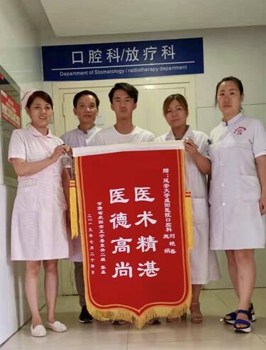 7月31日上午,烈日炎炎,口腔科住院部异常热闹。今天出院的患者张某为感谢住院期间医护人员的认真负责和悉心照顾,特送来一面写着“医德高尚、医术精湛”的锦旗。